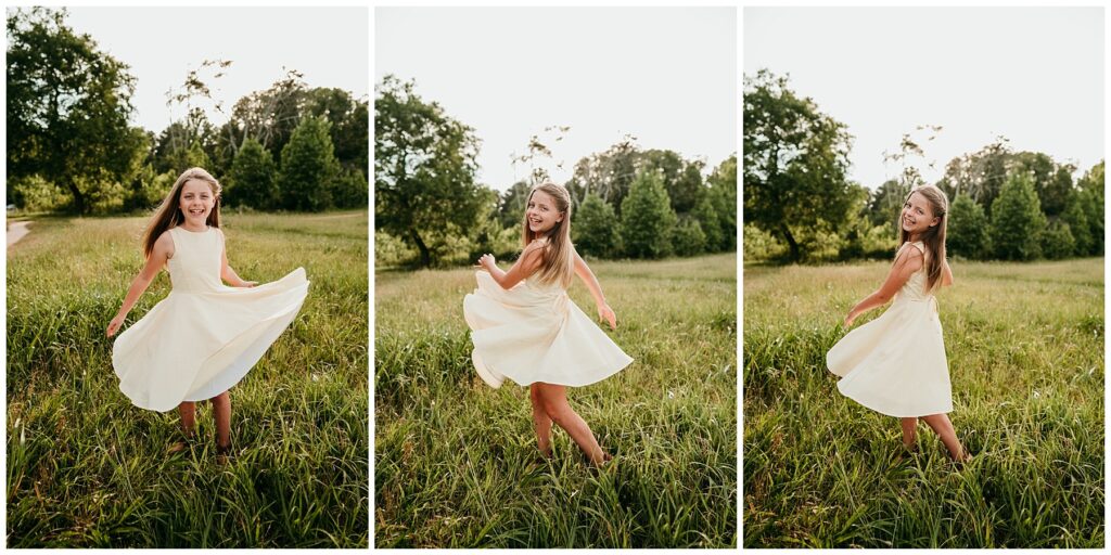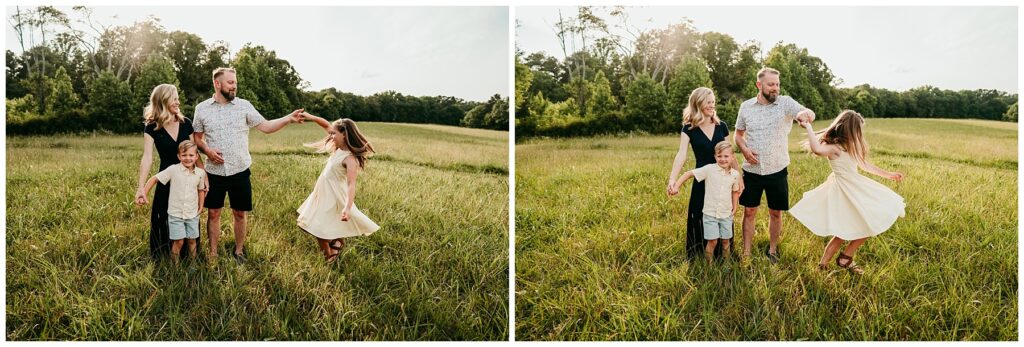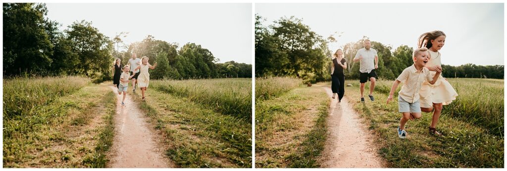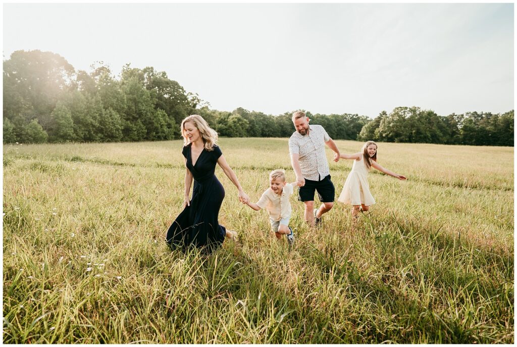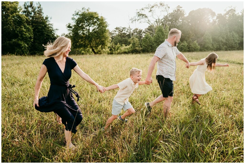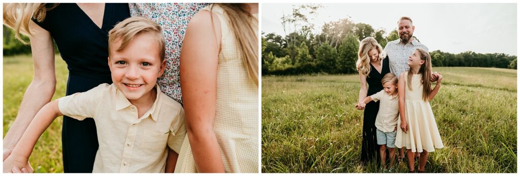 Summer sessions bring their own kind of warmth and energy. Longer days mean beautiful golden evening light, and the relaxed pace of summer often makes sessions feel more natural and playful. Barefoot kids, flowing dresses, and sun-soaked fields create images that feel carefree and full of life. Summer sessions can feel less rushed than the busy fall season, allowing families to truly enjoy the experience.