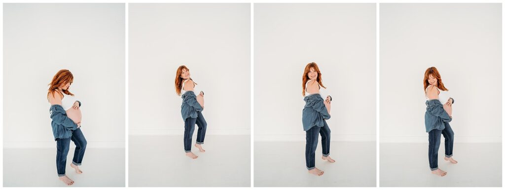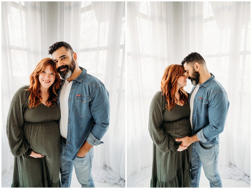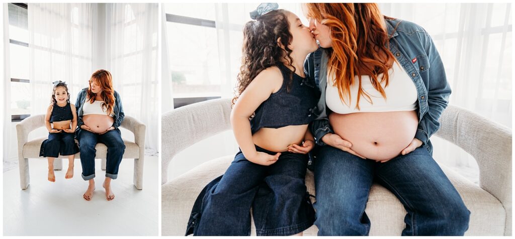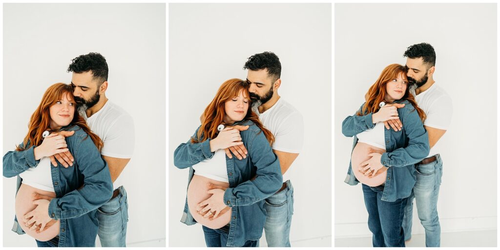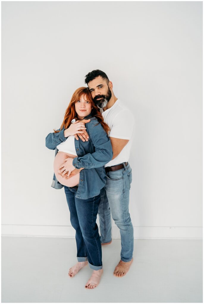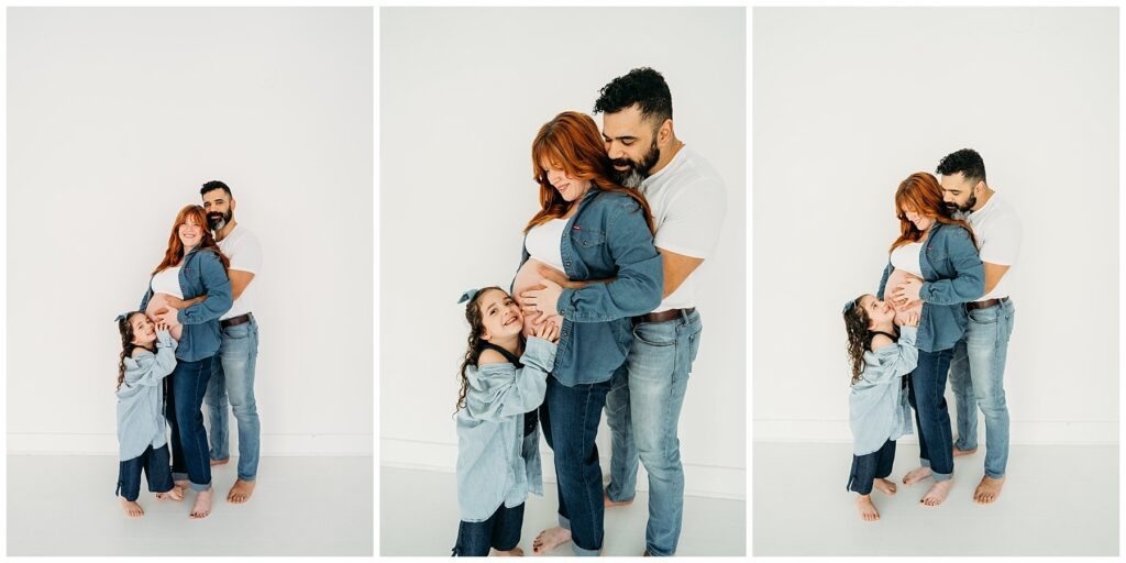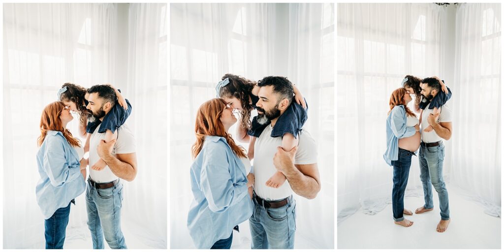 The denim look created such a cool, laid-back feel for the entire session. It kept the focus exactly where it should be-on this beautiful family and the quiet anticipation of the baby they’re about to welcome. Mom looked incredible, glowing with that mix of excitement and calm that comes with preparing to meet a new little life. Dad stayed close by her side, grounding the moment with his steady presence.